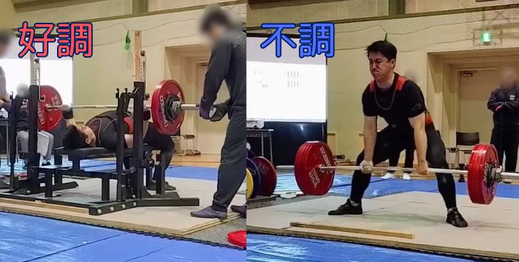 今回はまさに裏表の関係がそのまま当てはまってベンチプレスが好調で、デッドリフトは不調でした。ベンチプレスのために背中の柔軟性を上げた取り組みが、デッドリフトで重さを背中で受け止める剛性を失わせたのかもしれません。